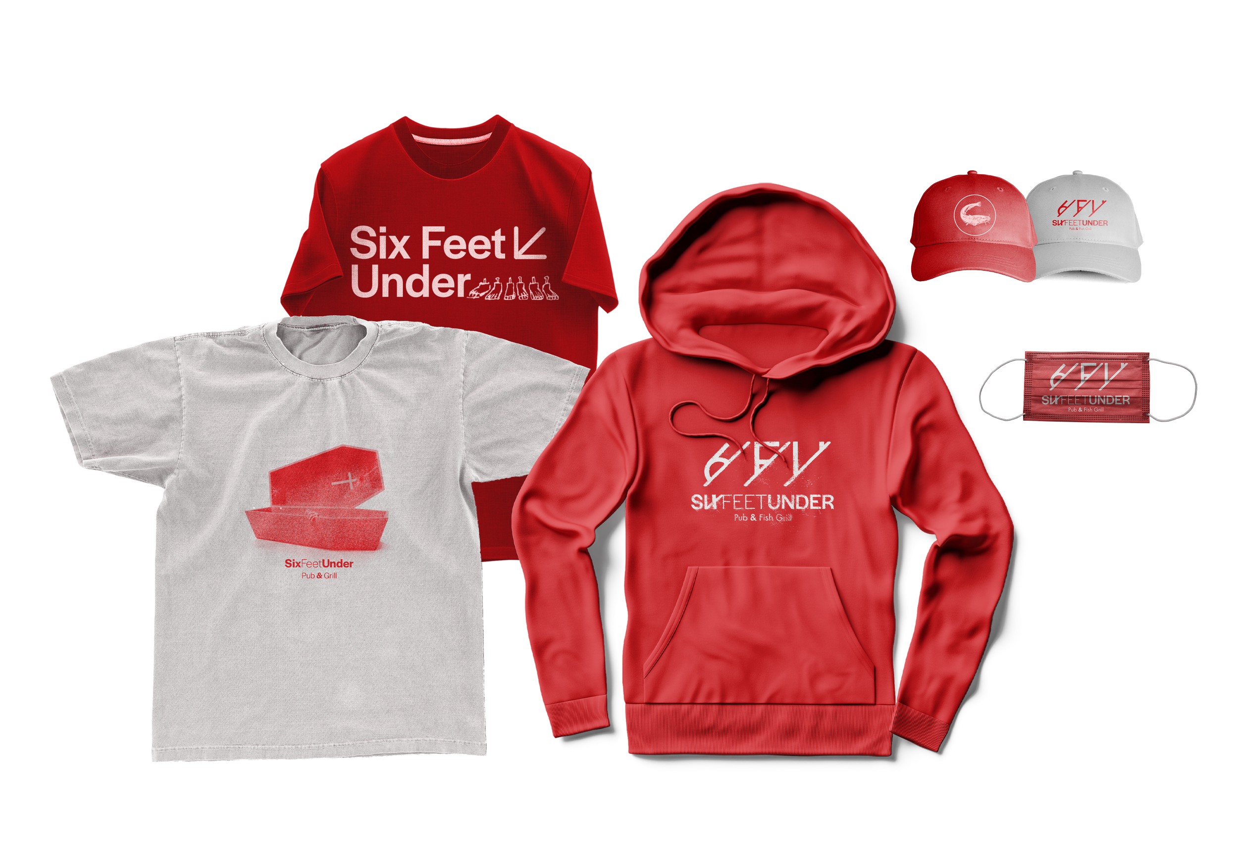 Toward the end of the project, I expanded the rebranding effort to include designing clothing merchandise for fans of the pub. My creative approach was inspired by my personal experiences at various pubs and grills, focusing on the elements that make these spaces memorable. In particular, I noticed that many of my favorite establishments featured their own custom wines and ales, which added a unique and authentic touch to their identity. Drawing from this inspiration, I proposed introducing branded wines and ales to Six Feet Under, adding a distinct and personal element that further set the restaurant apart. This final touch completed the rebrand, offering a more modern and holistic brand experience while honoring the pub's original character